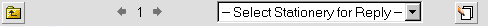 The drop menu in which the text Select Stationery for Reply is in, allows you to select what stationery you would like to use for a reply. Open the menu to display a list of stationery you have made. Once you have selected one, you will be able to reply to the message with the stationery you selected. If you do not have any stationery set up, click the stationery button (